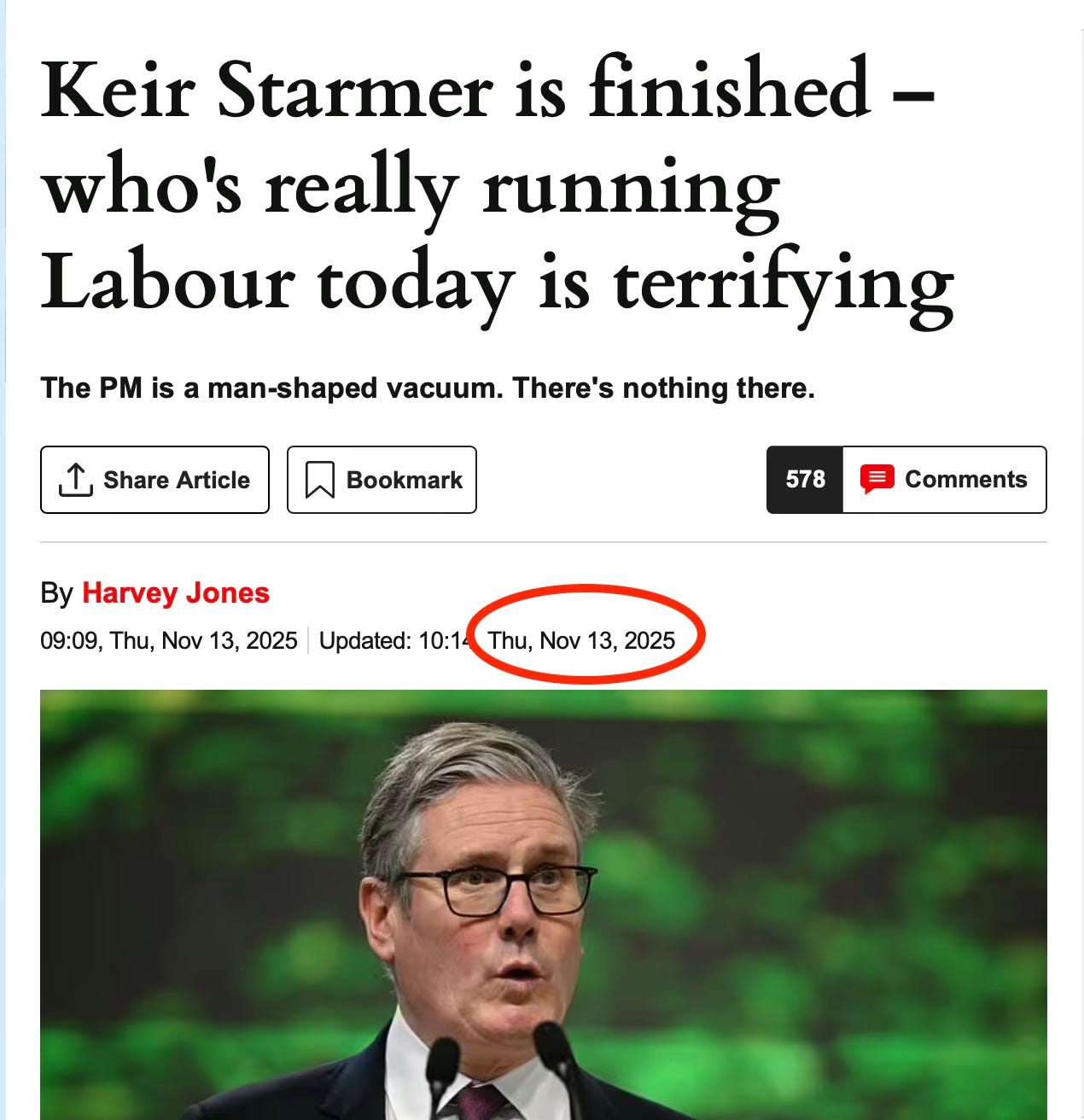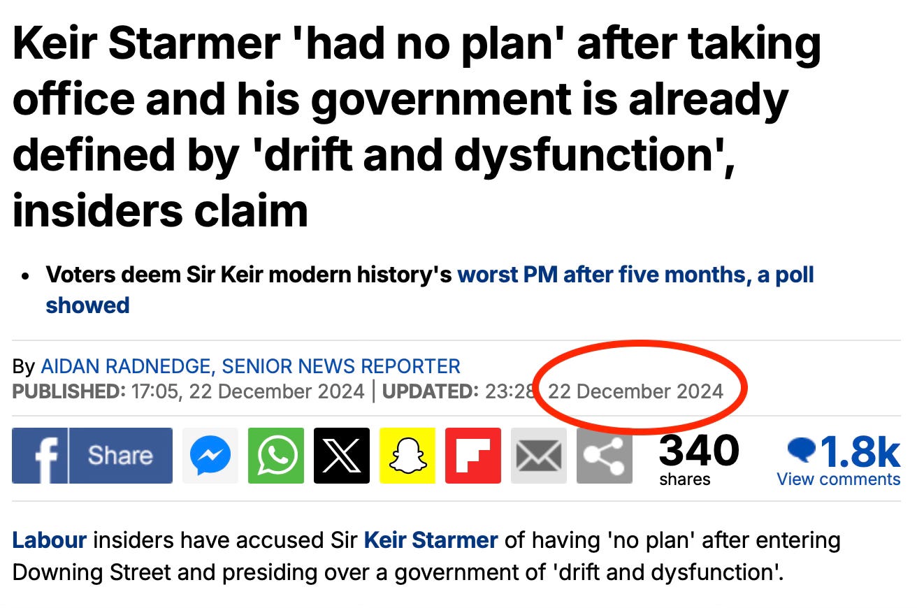 There is a major gap in No.10. The regime’s political brain has just resigned. Starmer is a blank sheet, always has been. It was clear before the election and has been obvious ever since. Note the dates of the two attached headlines.